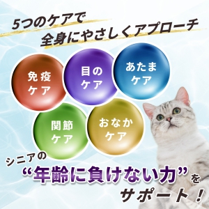 原材料名 | 鰹節粉末、ビール酵母、カツオエキス、マタタビ末、グルコサミン、米糠、プロポリスエキス末、乾燥ローヤルゼリー末、卵黄末、アガリクスエキス末、サケ軟骨抽出物(コンドロイチン含有)、有胞子性乳酸菌、ウコン末、MSM、イチョウ葉エキス末、V.C、植物発酵エキス末、ブルーベリーエキス末、オリーブ葉エキス末、ガラクトオリゴ糖、イソマルトオリゴ糖、抽出V.E、カロテン色素、ヘマトコッカス藻色素(アスタキサンチン含有)、ナイアシン、マリーゴールド色素(ルテイン含有)、ヒアルロン酸、パントテン酸カルシウム、V.B1、V.B6、V.B2、V.A、葉酸、V.D、V.B12 |